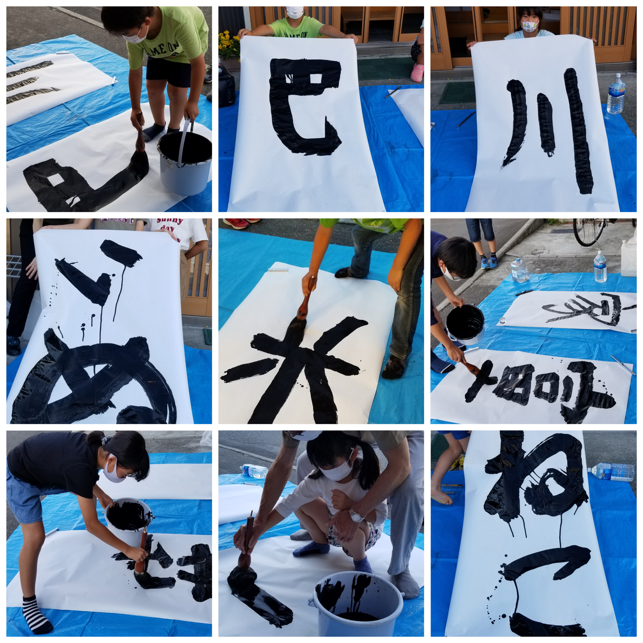 何がいいかなと思っていると、子供たちが教室に飾ってある大きな筆を見ては興味深々に触っていたことが脳裏に浮かび、この大きな筆で書くイベントにしようと決めました!