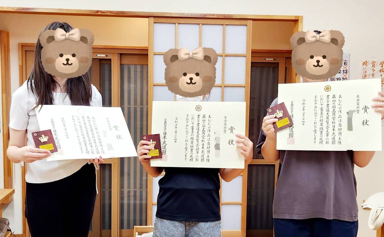 また、高校生、中学3年生、小学5年生の3人が毛筆・硬筆で「大会奨励賞」を受賞しました!