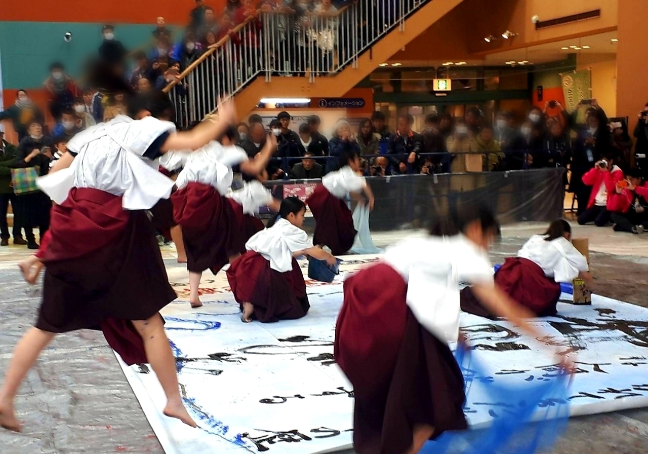 長年指導した書道部が出場した書道パフォーマンス大会風景